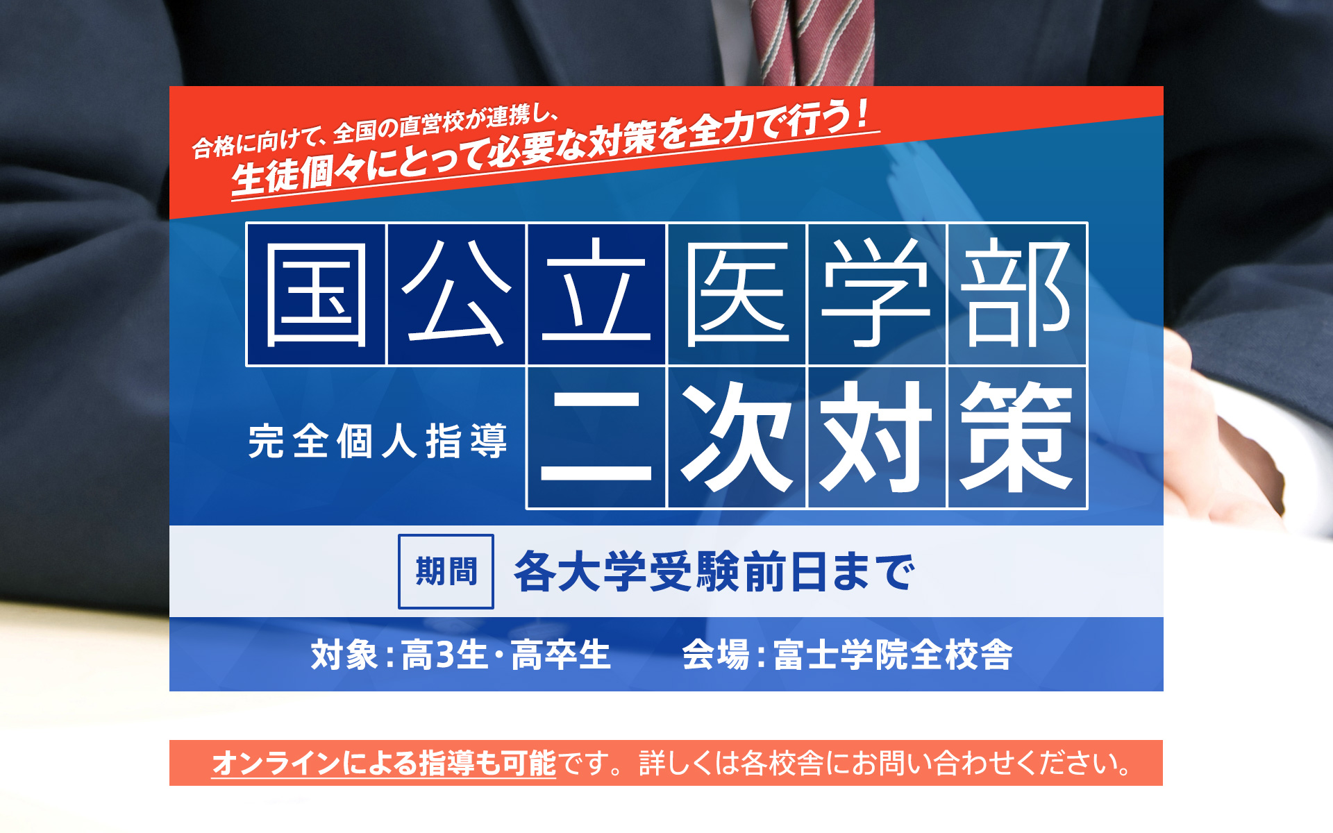 国公立二次対策は、迫る医学部受験に向け、受験生一人ひとりにとって必要な最後の追い込みを図る絶好の機会です。