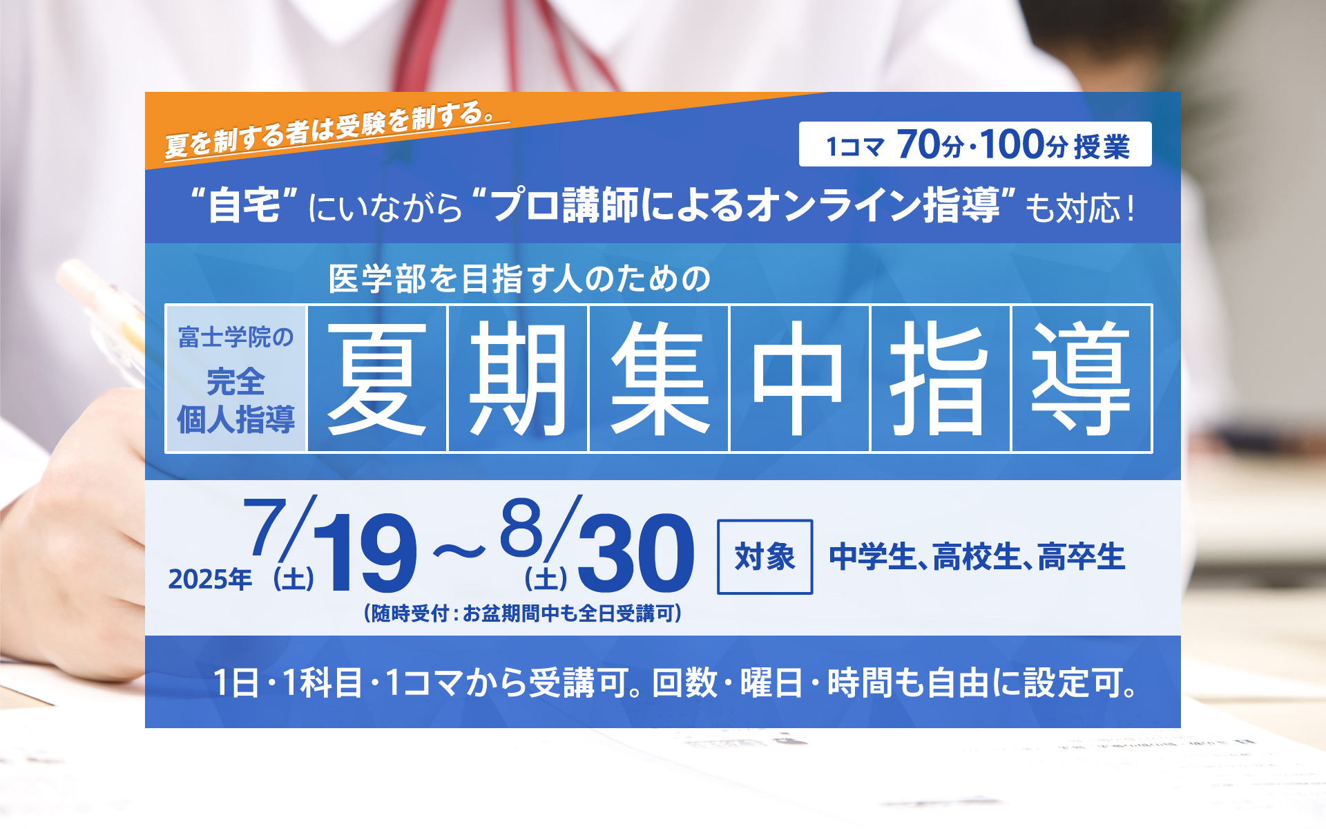 最後になりましたが、私が医学部に合格できたのは間違いなく富士学院のおかげです。先生方、教務の方々、短い間でしたが本当にありがとうございました。