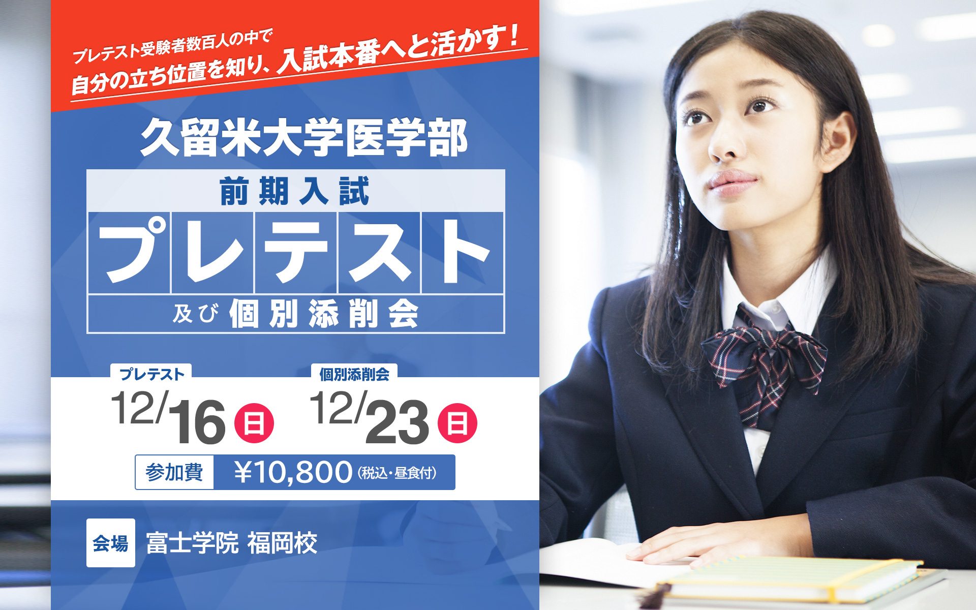 久留米大学医学部を受験予定の方は、ぜひこのプレテストと個別添削会をご活用ください。