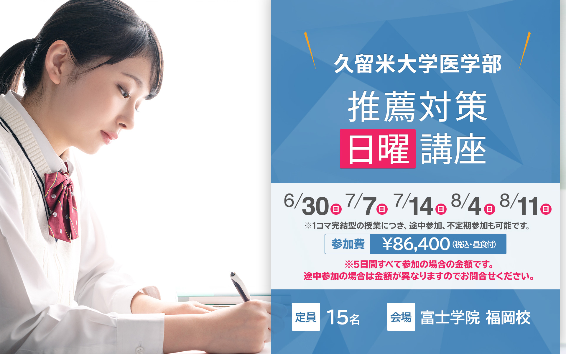 久留米大学の独自の評価基準がある小論文に加え、面接対策までしっかりと対応します。