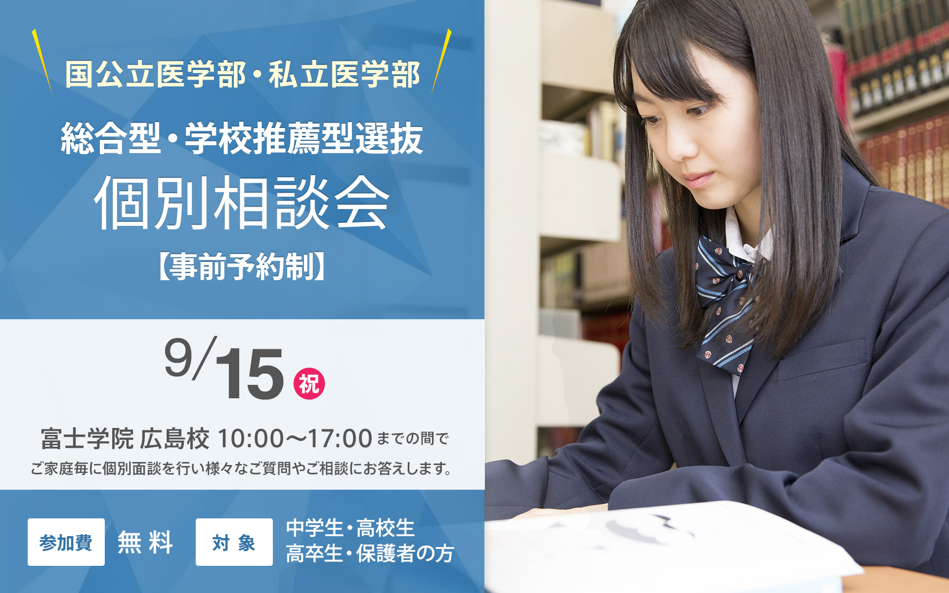 ※本説明会は学校推薦型・総合型選抜が中心ですが、個別面談なので高卒生の方でもお気軽にご相談ください。