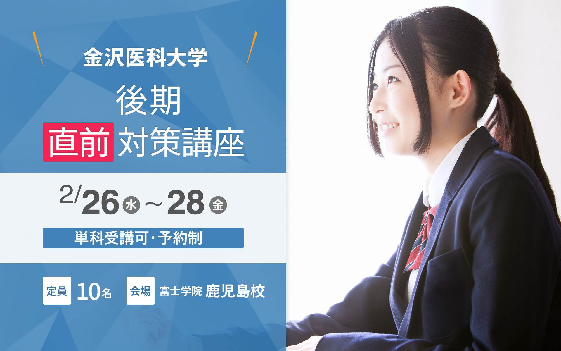 大学毎に特化した後期直前対策講座です。
