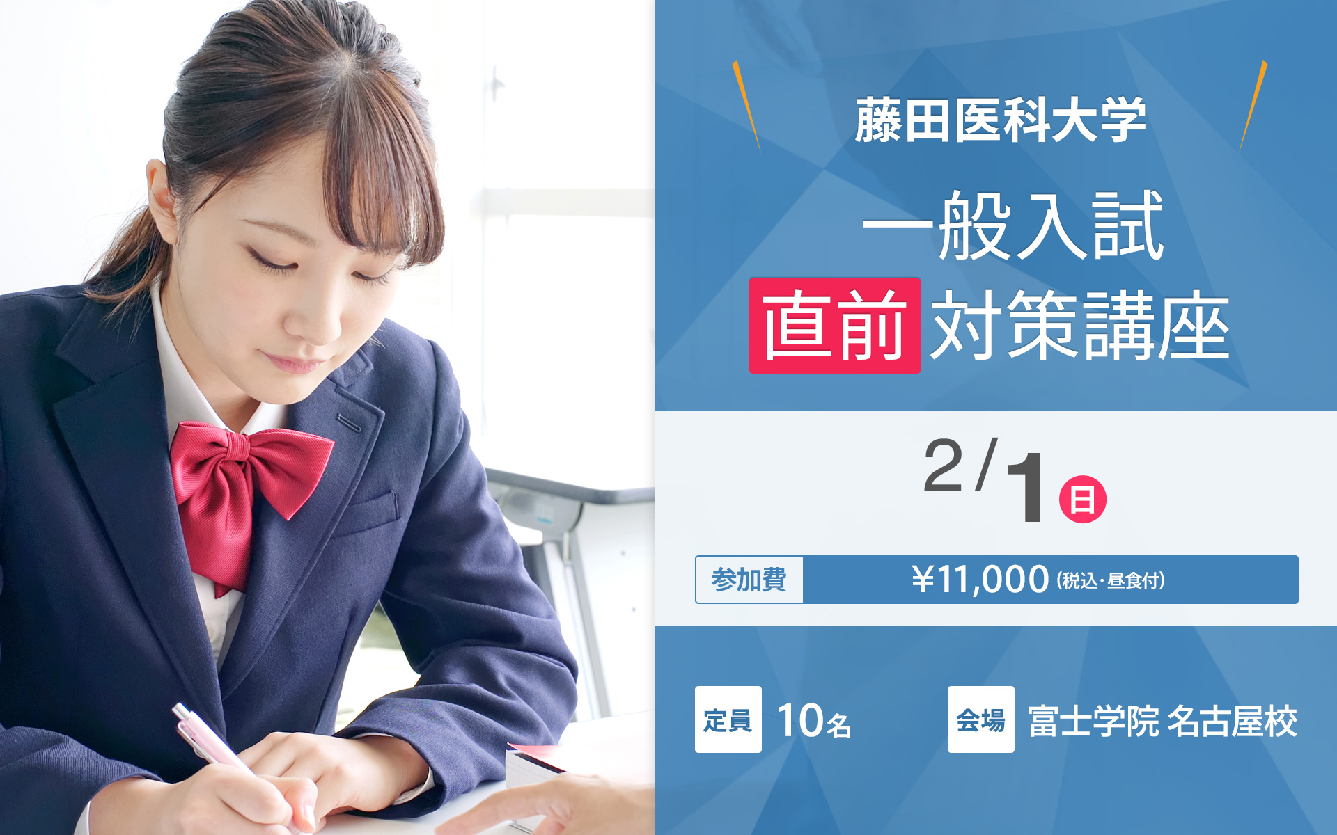 一般入試だけで18名の藤田医科大学医学部合格者を誇る富士学院の直前対策講座。