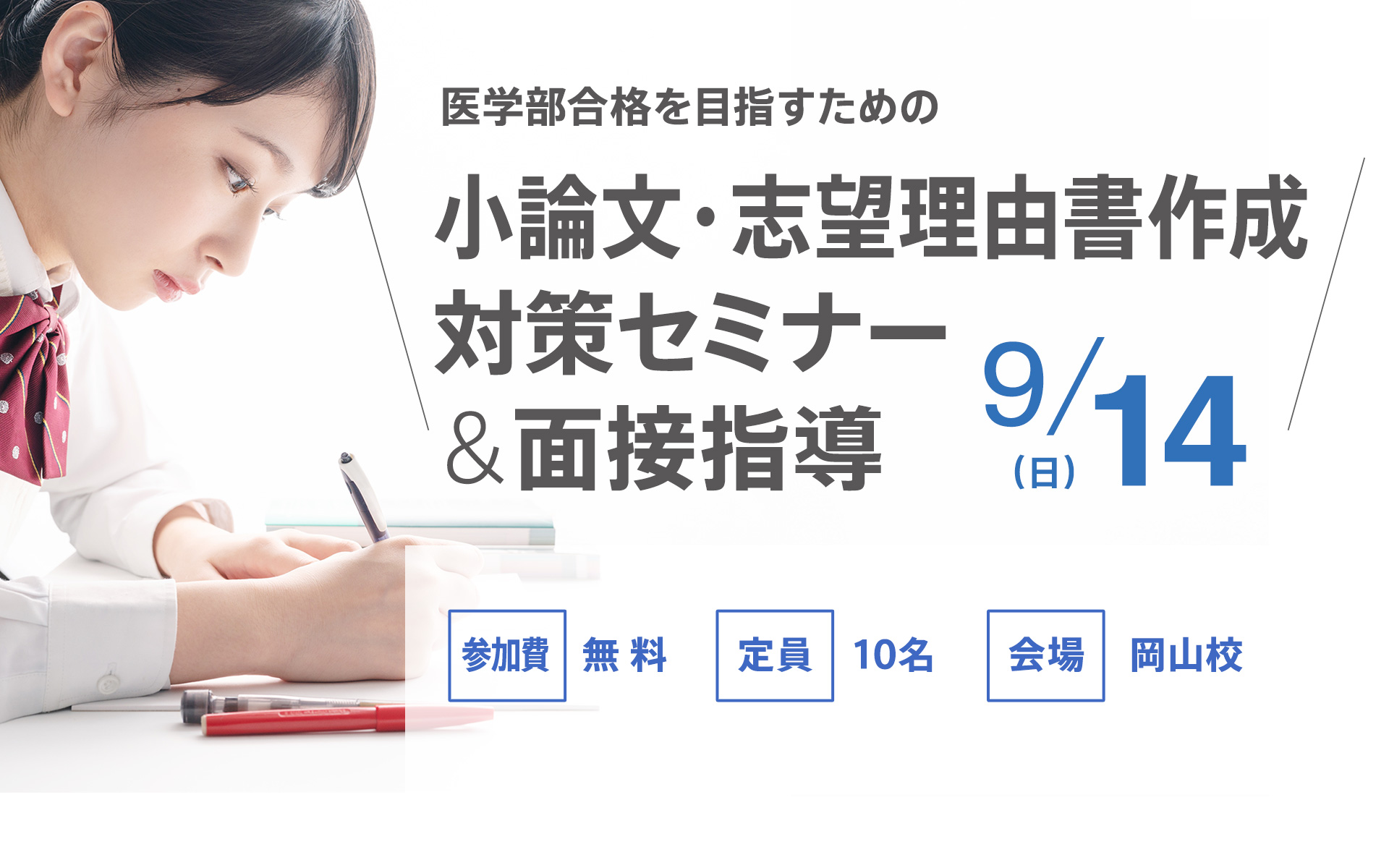 川崎医科大学は面接の占める得点比率が高く、推薦入試に向けて早くから医師志望理由や自分の意見をまとめられていたこと、また大学別によく聞かれる質問をもとにした面接指導やアドバイスを受けることができたことも、合格できた大きな要因だと思います。私は数学の一教科だけを受講していたのですが、受講していない科目の質問や、私のレベルに応じた勉強法や勉強のペースを聞けたのもとても良かったです。短い期間でしたが、ありがとうございました。