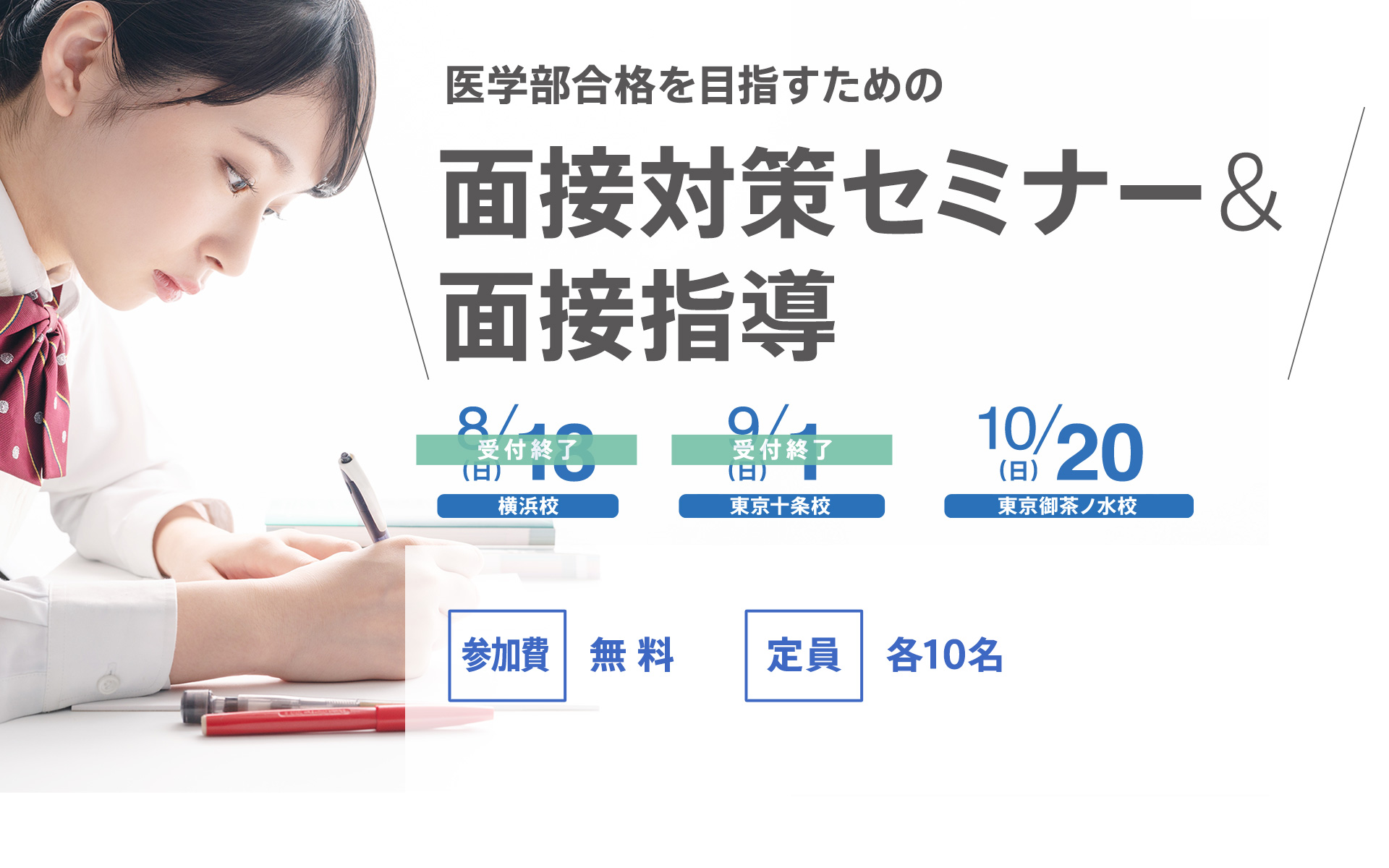 10/20開催の東京御茶ノ水校は定員に達しましたので、申込受付を締め切らせていただきます。