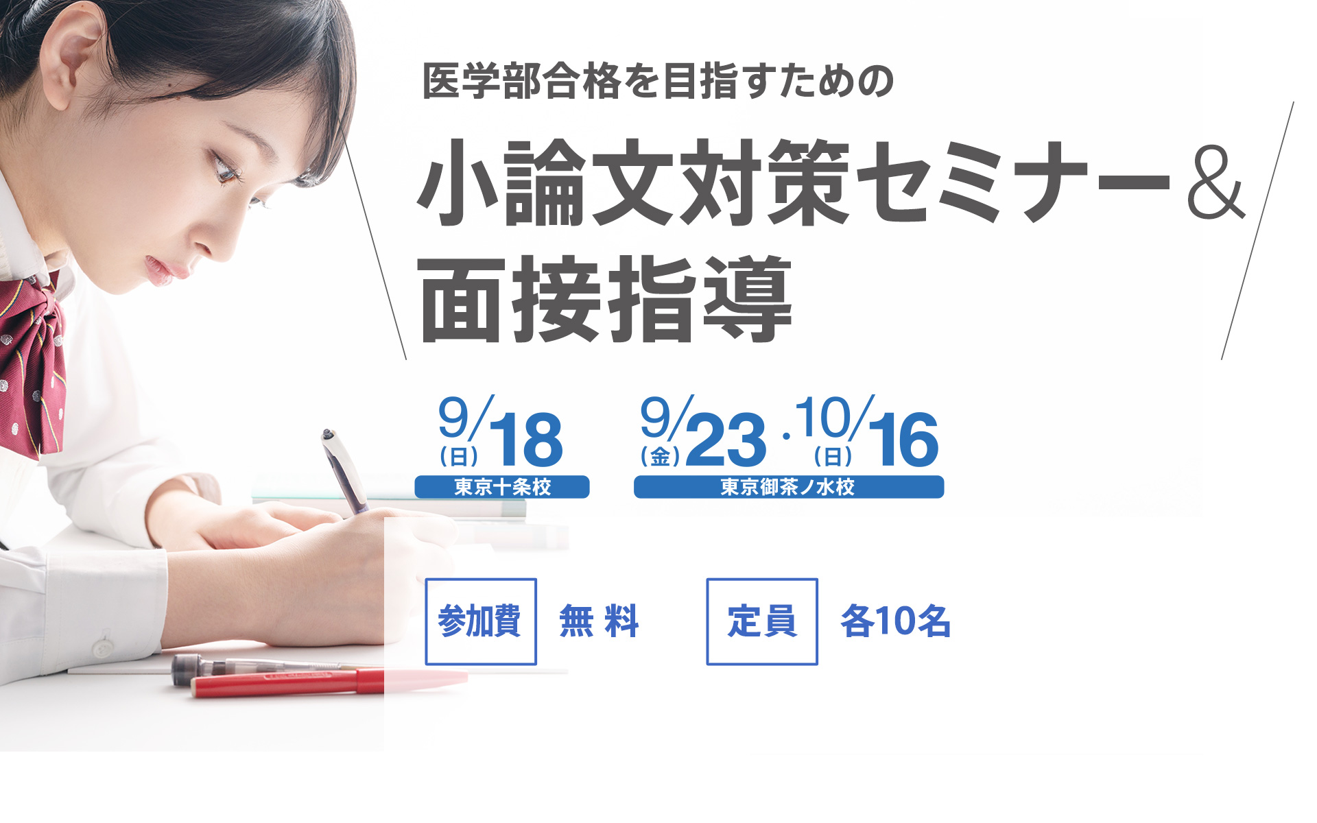高校で実施した小論文添削プログラムおよび校内セミナーから指導開始。