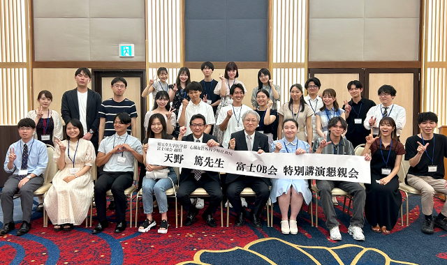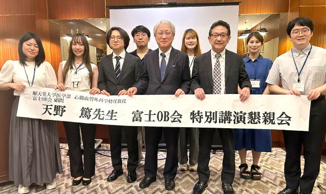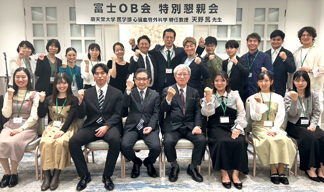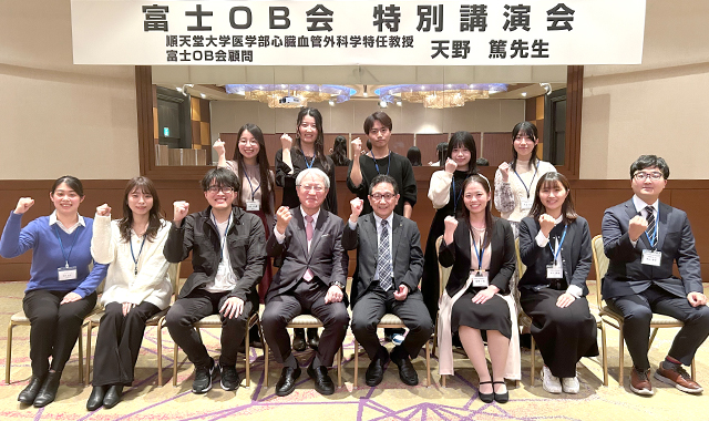 2022年10月より富士OB会顧問として就任いただいている順天堂大学医学部心臓血管外科学特任教授、天野篤先生をお迎えし、2024年7月からOB医大生への応援企画として特別講演会・懇親会を実施しています。天野教授からは「医師になるために学生生活で必要な6年間」について講演をいただき、その後はOB医大生との質疑応答で一人ひとりに丁寧に回答していただきました。参加したOBからは「天野先生の経験であったり、なかなか聞くことのできない話をお伺いできて大変有意義な時間となりました。」「医学部にて、横のつながりがいかに大事かを大いに感じているところです。今後のOB会が楽しみです。」など様々な感想をいただき、大変好評でした。