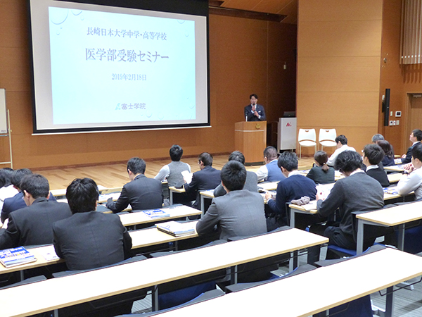 富士学院では各大学の医学部教授のご協力を得て医学部の模擬講義を行っています。