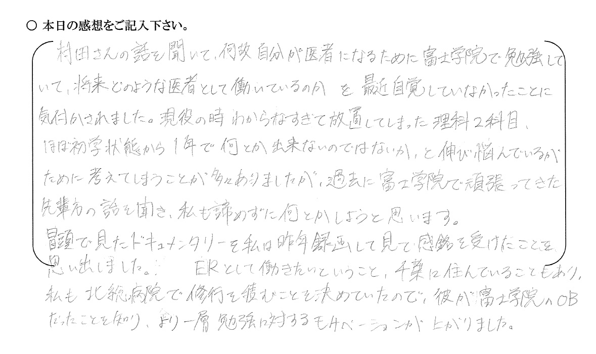 富士OB会発足には、大学合格がゴールではなく、大学に入ってからが医師になる為の本当のスタートであり、