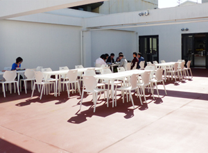 7Fの食堂・カフェラウンジの外には屋外テラスを併設しています。天気が良い日には外に出て気分転換を兼ねた食事ができたり、コーヒーを飲みながら友人とくつろいだり、リフレッシュできる環境を用意しています。