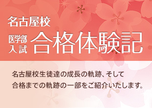 名古屋校開校10年以上の信頼と実績。2025年度も名古屋市立大学合格をはじめ、超難関の大阪大学にも合格者を輩出。私立は毎年地元愛知医科大、藤田医科大に多数合格!専用食堂、男女別寮完備で全国の医学部医学科に多くの合格者を輩出しています。