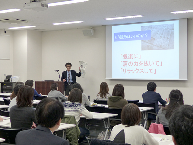 そして第二部は朝日新聞ご担当者様から、「医学部受験に役立つ新聞活用講座」を行っていただきました。新聞を読むことで「どのようにそれを活用」していくか、また「論理的思考をどのように養っていくか」など、医学部入試の面接、小論文対策にも役立つ情報を分かりやすい説明で、「新聞を読んでいくことの重要性」について講義していただきました。