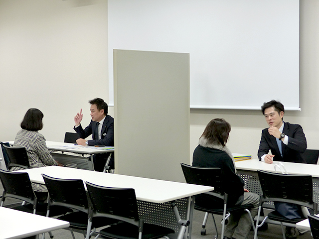 その後は個別面談を行いましたが、多数の面談申込をいただいたのでOBの皆さんも協力してくれました。