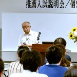 その後に行われた入試説明会では推薦入試・一般入試の概要や変更点などをお話し頂き、平成31年度一般入試では後期試験を新たに実施することや、小論文や面接で留意しておくべき点など、細部にわたるまで説明して頂きました。
