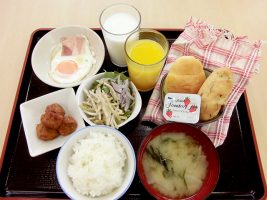受験生活において、食事はとても大事だと考えています。1日の始まりは何と言っても朝ごはんです。福岡校は毎日バイキング形式の朝食で、生徒達は毎日午前中の学習に必要なエネルギーをこの食堂でとっています。