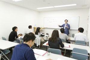 いよいよ授業開始です。大手の予備校から移ってきた生徒が一堂に驚く少人数クラスの教室面積。教師との距離がとても近く、生徒たちは授業の最初から最後まで集中しています。