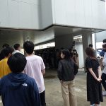 逃げ遅れた生徒がいないか職員は館内を見回り1階の駐車場に合流。無事避難が完了した後点呼を行いました。