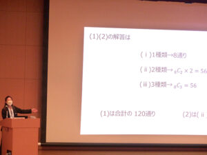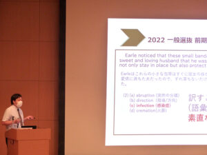 富士学院では、7月17日(日)に久留米大学医学部のオープンキャンパスにお招きいただき、入試問題解説を行いました。今年で5年連続となるこの講座では、本学院の英語・数学の精鋭講師が、過去に出題された(学校推薦型選抜)試験問題を基に、試験の傾向と対策について説明いたしました。また、2022年度一般選抜試験の解説も行いました。試験に向けて押さえておくべきポイントや、解答を導くための手順などを紹介し、ご来場いただいた皆様はメモを取りながら耳を傾けてくださいました。