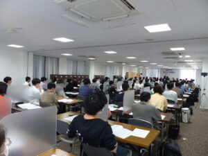 式の中ではまず私から坂本理事長の開講式メッセージ代読と挨拶を行い、続いて指導部を代表して河合指導部長より挨拶をいただきました。昨年までは開講式の時間短縮や会場を分け同時中継で実施するなど、様々な取り組みで感染予防に努めてまいりましたが、今年度は2019年度振りに従来の形式で進めました。