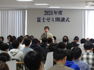 福岡校校舎長の橘田です。4月14日(日)、4F大講義室にて生徒、職員、常勤講師が一堂に集い2024年度富士ゼミ開講式を執り行いました。