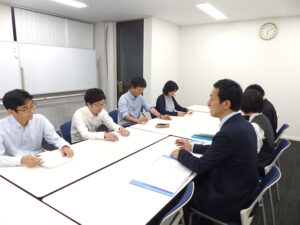 学院の環境にも慣れ、自分の学習スタイルを確立し、計画的に学習を進められている生徒もいる一方で、疲れが溜まり気が緩んでしまいそうになる人もいます。その中でこのチーム会議は、自分を見つめ直し、気を引き締めまた頑張ろうと思うきっかけになるものではないかと思います。チーム会議に入る前の生徒は、緊張した面持ちですが、講師のアドバイスを真剣に聞き、最後にこれからの決意を述べ、学習に向かっていきます。