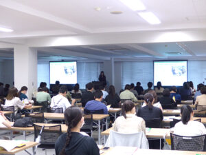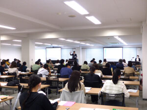午後には福岡大学の説明を実施いたしました。福岡大学からは入試課と医学部事務部のお二方をお迎えし、「2024年度学校推薦型選抜の総括と2025年度学校推薦型選抜の変更点と概要」について詳細にお話しいただきました。学校推薦型選抜に限らず、一般選抜における定員の変更や繰り上げ合格の具体的な動きについても詳しく説明がありました。具体的な数値を交えたお話は、受験に向けた準備を一層具体化する助けとなったようです。