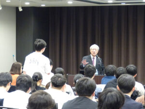 富士学院では「自身が何のために勉強しているのか」「医師になるということはどういうことなのか」等「医師になる」という生徒自身の強い自覚や更なるやる気を促していくことを目標に、年間を通し様々な取組みを行っています。今回は「自立講座」として、天野教授に「医師になるための覚悟となってからの責任」というテーマで、これから医学生になっていく生徒達に向けて、医師になるという自覚を高めるための意識付けを行っていただきました。
