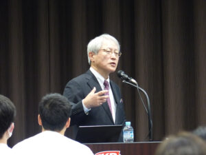 11月9日、富士OB会顧問である順天堂大学医学部心臓血管外科学特任教授 天野篤先生による「富士学院自立講座」を実施しました。富士ゼミ生、現役生の受講生、保護者様等多くの方にご参加いただき、医療の最前線でご活躍されているスーパードクター天野教授のお話を聞ける大変貴重な機会となりました。