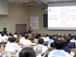 7/20(日)、久留米大学医学部医学科旭町キャンパスにてオープンキャンパスに参加された受験生に対し、富士学院講師陣による医学部入試問題解説の機会をいただき、約100名の参加者を前に数学と英語の解説を実施させていただきました。これは、久留米大学側からご依頼を受けて、当学院の講師陣が出題の傾向や解き方のポイントを参加者へ余すことなくお伝えする機会であり、依頼をいただいてからは8年目となります。会場内では受験生の皆様だけでなく、保護者の皆様の中にも熱心にメモを取られる姿がありました。久留米大学医学部医学科特有の問題をクリアするために難易度や傾向などをいち早く押さえることは合格への第一の条件とも言えます。今日が皆様にとって大切な一歩となれば幸いです。