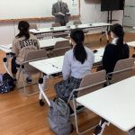 個人面接のグループは、面接会場への入退室の所作を含めた練習をおこない、当学院校舎統括本部長の村田よりフィードバックを受けていました。