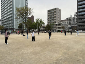 名古屋校では、7月末までの期間、毎週1コマの「リフレッシュタイム」を設けています。校舎近くの体育館や公園を利用し、思い切り体を動かす時間です。