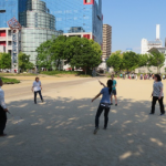 当日は天気にも恵まれ、絶好のリフレッシュタイム日和でした。近くの公園まで移動し、全員で入念に準備運動を行いました。その後はチームに分かれてバレーボールやドッジボールで白熱した試合が展開されていきました。中には水風船をお互いに投げ合う遊びを通して、程よい涼しさを感じている生徒もいました。