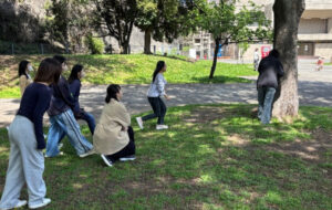 腹ごなしに、懐かしの「だるまさんが転んだ」で盛り上がるみんな