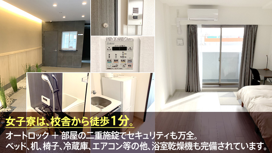 (※男子寮徒歩数分圏内、女子寮徒歩1分)